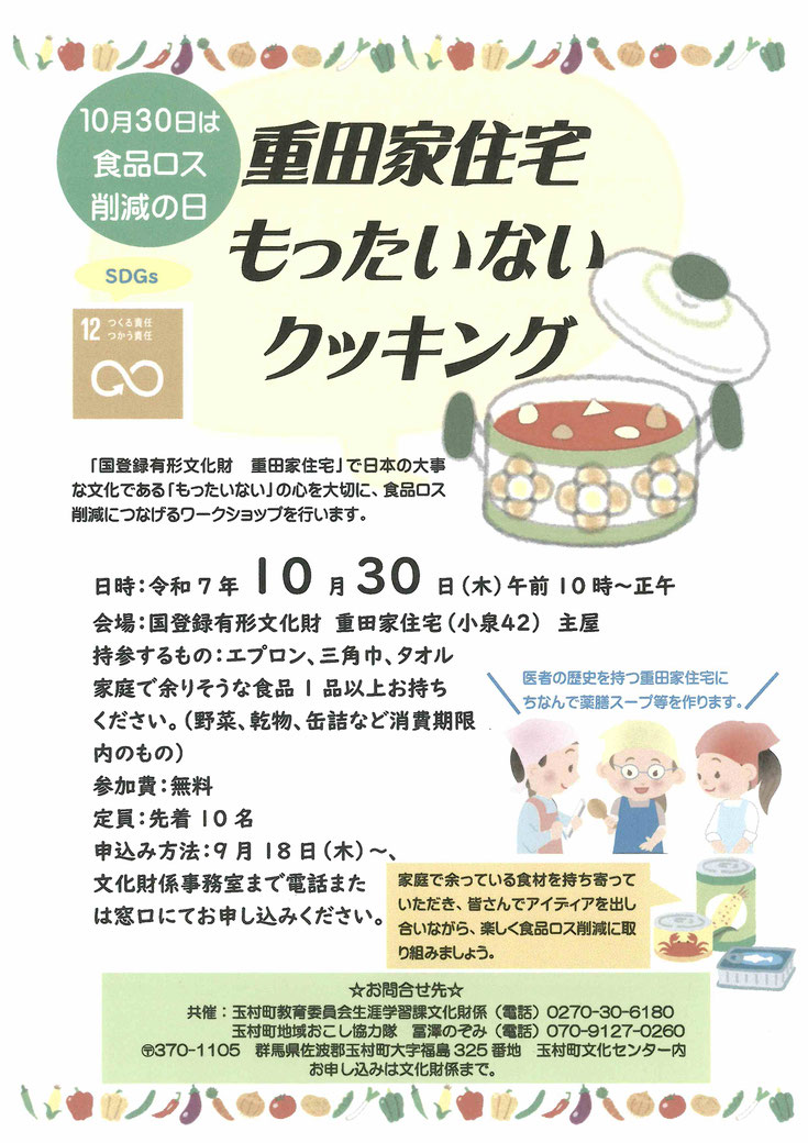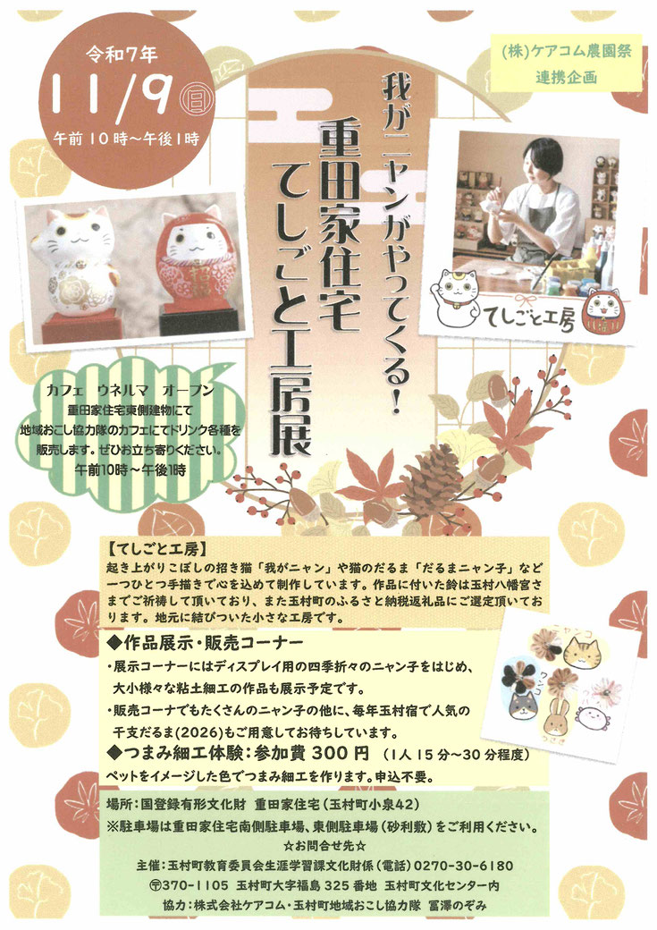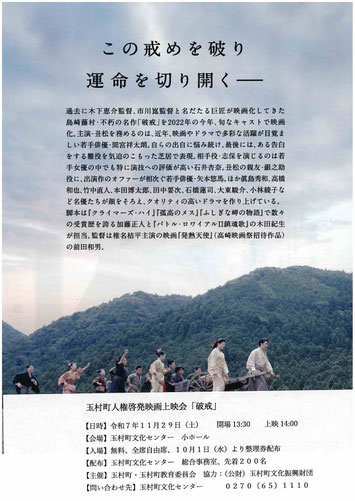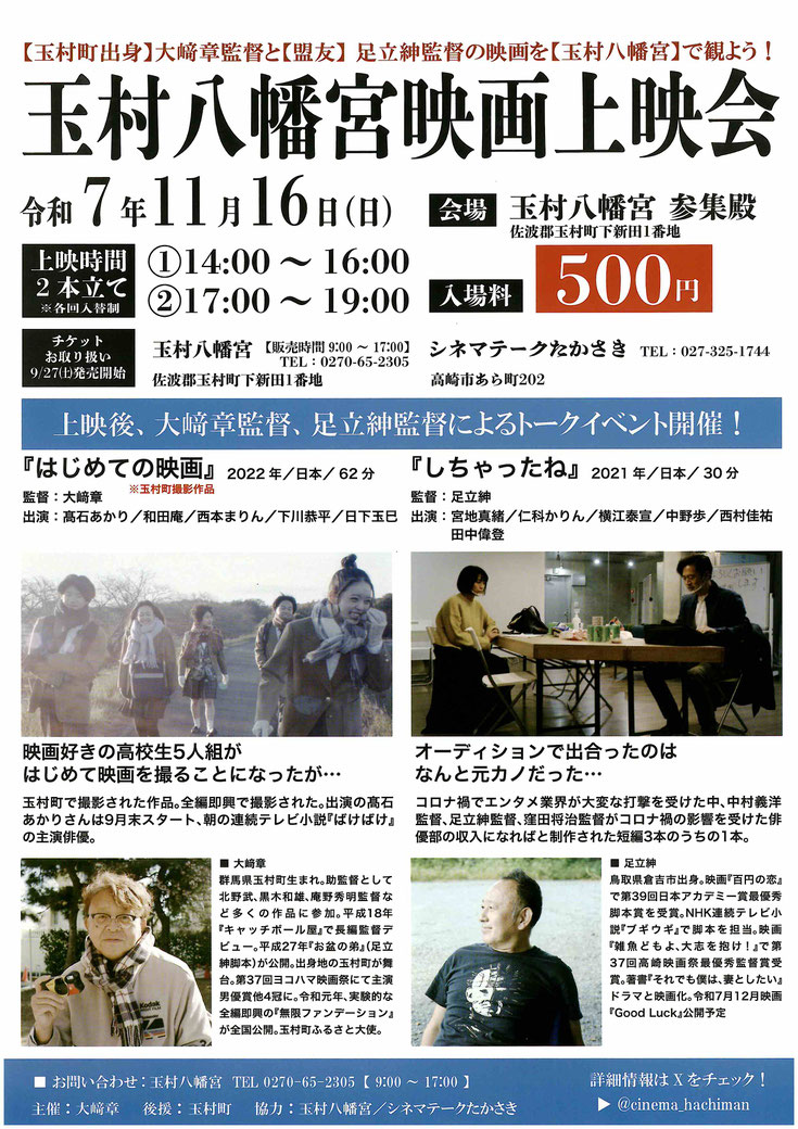 令和7年9月30日 「ぱる手づくりフェスティバル」「玉村町チャリティーコンサート」「玉村八幡宮映画上映会」のチラシを掲載しました。
